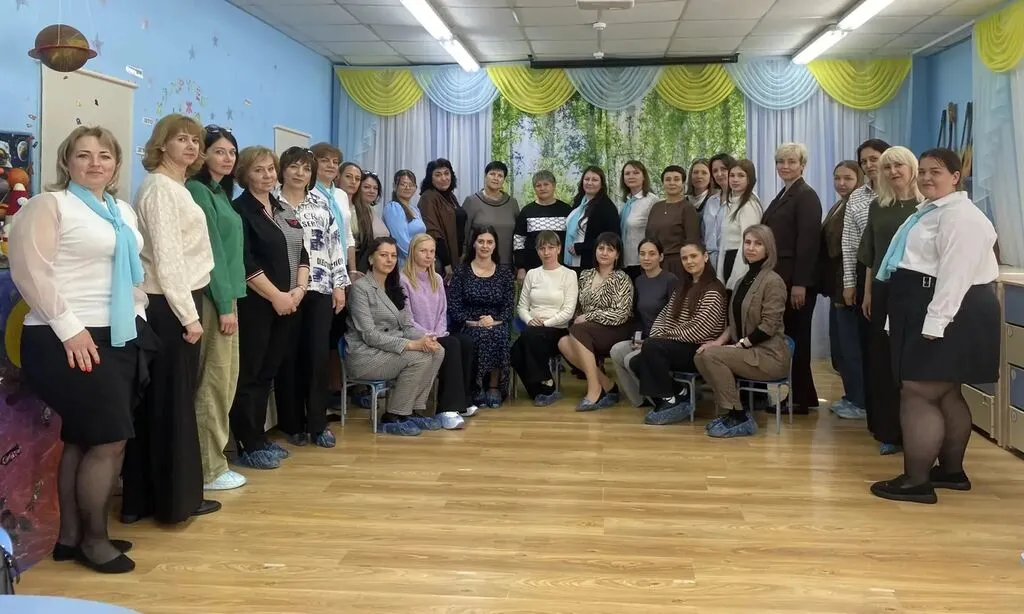 Сегодня, 10 апреля, на базе пилотного детского сада по внедрению Программы просвещения родителей (законных представителей) детей дошкольного возраста МБДОУ ДС 25, состоялся районный семинар для педагогов дошкольных образовательных организаций Белореченского района на тему: «Создание пространства для взаимодействия родителей и педагогов в детских садах». Цель семинара: обсуждение методов и подходов к созданию эффективного пространства для взаимодействия родителей и педагогов, способствующего гармоничному развитию детей. По традиции для присутствующих педагогов с танцем выступили воспитанники детского сада № 25 и их мамы. Во вступительном слове заместитель заведующего МБДОУ ДС 25 Клименко Г.С. отметила основные принципы при организации работы в рамках новых форм работы с семьей. О раздевалке как стартовой площадке для эффективного взаимодействия с семьёй поделилась своим опытом работы воспитатель МАДОУ ДС 12 Негуляева К.С. В своем выступлении воспитатель МАДОУ ДС 12 Портнова В.К. рассказала о теории поколений, которая может помочь педагогам лучше понимать мировоззрение родителей, выстраивать эффективное взаимодействие с ними и выбирать подходящие способы коммуникации. Мастер-класс «От идеи к звуку» провела музыкальный руководитель Архилей Т.А. Как проходит «День открытых дверей» в детском саду поделилась опытом работы воспитатель МБДОУ ДС 25 Гончаренко Н.Н. А воспитатель этого же детского сада Беляк Ю.А. рассказала о том, как реализуется практика «Говорящая раздевалка». Своим опытом работы по эффективным практикам родительского просвещения в ДОУ поделилась воспитатель МАДОУ ДС 11 Голобородько О.Ю. Семинар прошел на высоком методическом уровне. Искренне надеемся, что каждый участник семинара получил тот заряд творчества, поиска, который станет залогом дальнейшего профессионального роста.